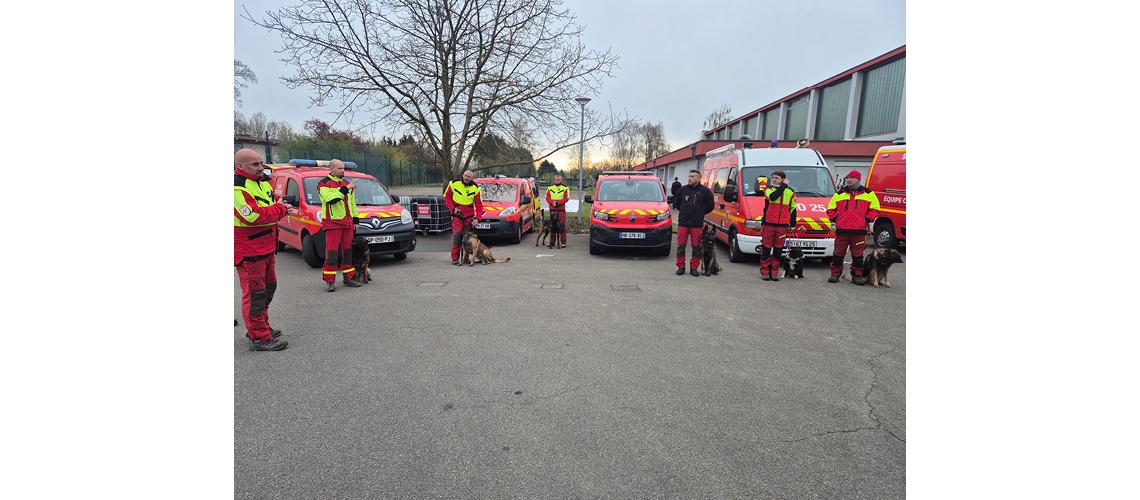 Des renforts issus des services d’incendie et de secours voisins ont été mobilisés pour rechercher de victimes ensevelies sur six sites à travers le département. Les équipes ont été appuyées par une vétérinaire, experte du SIS 67, qui a assuré le soutien sanitaire opérationnel et a également procédé à un exercice de secourisme canin.