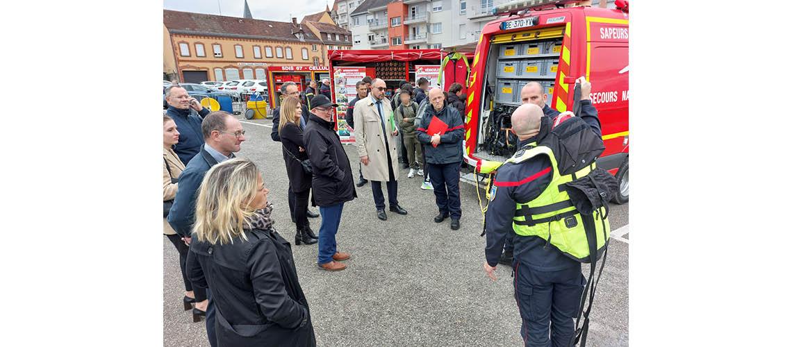 Pour cette édition, 15 sapeurs-pompiers issus des centres d’incendie et de secours de Haguenau, Drusenheim, Molsheim et Strasbourg Finkwiller étaient mobilisés, accompagnés de cinq engins. Ils ont présenté au public les moyens courants, notamment les véhicules de premiers secours incendie polyvalent – VPSI et les camionnettes d’interventions diverses – CID, ainsi que spécialisés, déployés lors d’événements météorologiques provoquant des inondations.